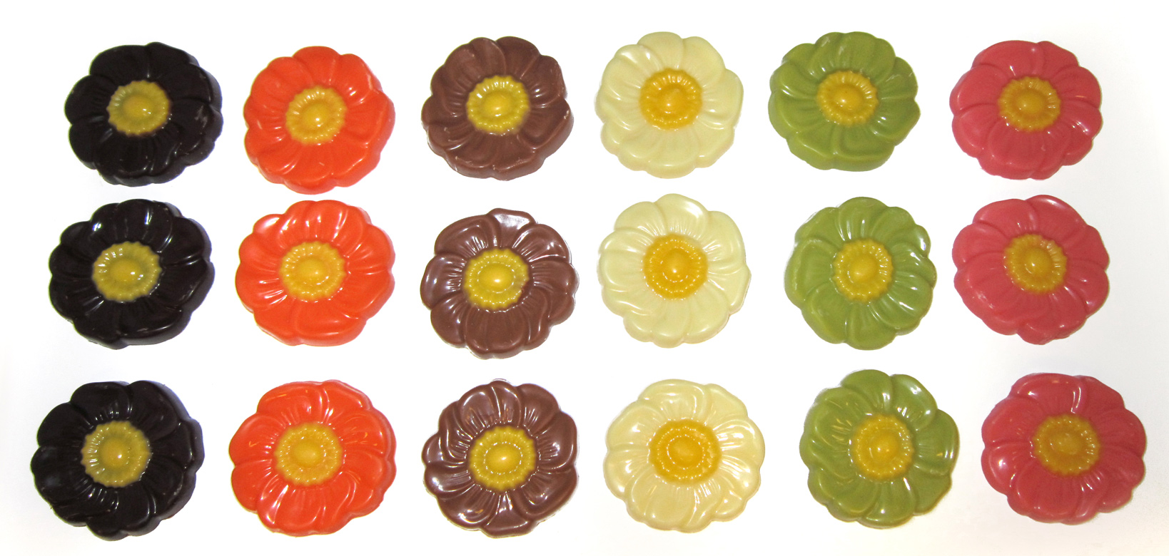 een kleine greep uit ons assortiment. De chocolade is vaak in meerdere kleuren